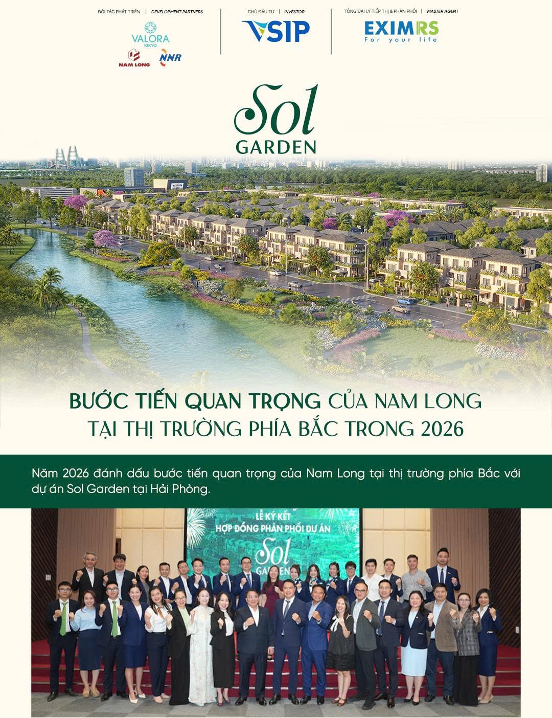 Dự án SOL Garden là “đứa con cưng” được thai nghén từ sự hợp tác chiến lược giữa Tập đoàn Nam Long, Nishi-Nippon Railroad (Nhật Bản) và VSIP Hải Phòng. Sự kết hợp này mang đến một bảo chứng thép về tiến độ, chất lượng xây dựng và phong cách quản lý chuẩn quốc tế.